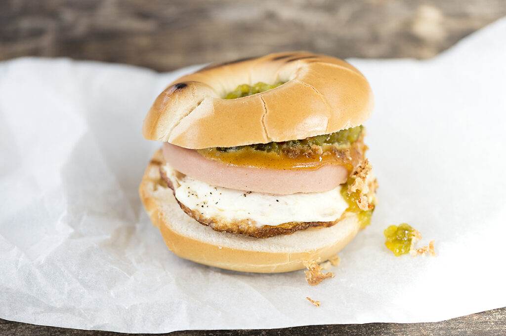 For a manly taste! Ingredients2 servings2 Keski Classic Kringles2 thick slices of tea sausage with oniona pat of butter2 eggsa pinch of saltfreshly ground black pepper2 tbsp pickle salad2-4 tsp mustard2 tbsp dried onion