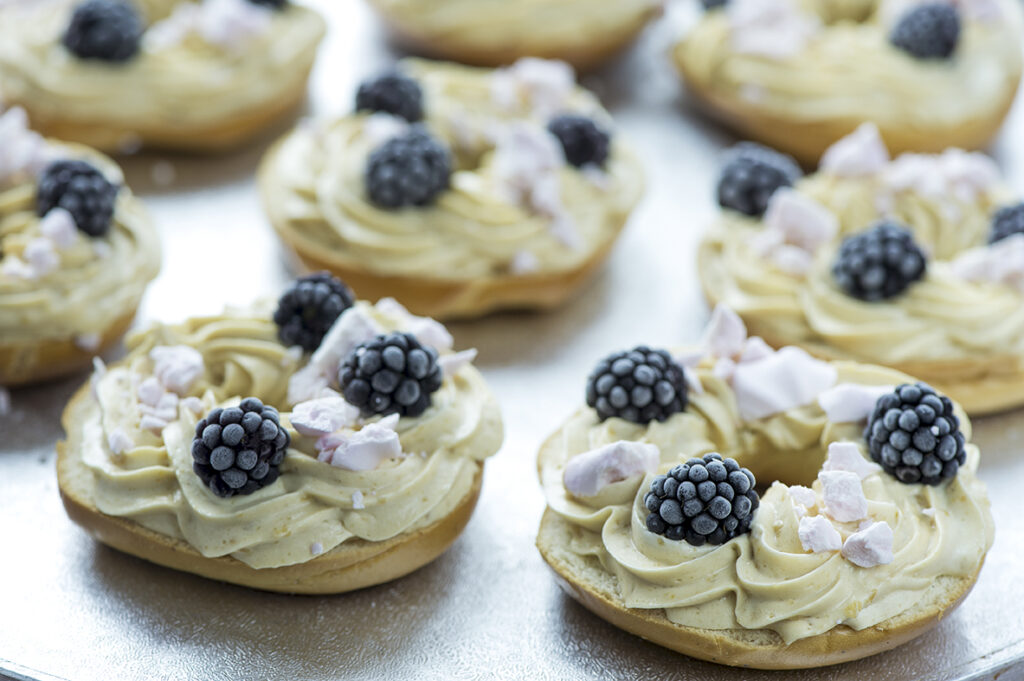 These lovely coffee-flavoured bun Kringles are stylish to serve. Serve during the same day or store in the refrigerator until serving. Ingredients8 servings4 Keski Cardamom Kringles1 dl vanilla cream powder2 dl coffee1 dl milk3/4 dl icing sugar1 dl whipping cream Topping: 1-2 dl boysen berries or other berriesa few crumbled meringues