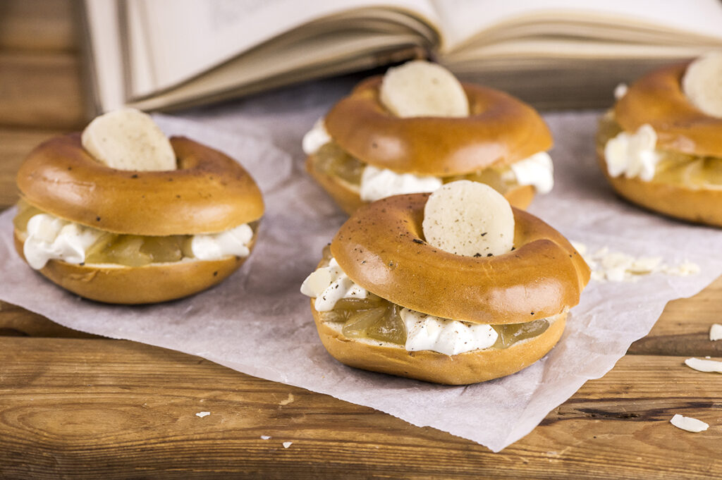 En kringla för karlakarlar! Ingredienser2 portioner2 klassiska Keski fikakringlor2 tjocka skivor lökkorven klick smör2 äggen nypa saltfärskmalen svartpeppar2 msk gurksallad2–4 tsk senap2 msk torkad lök