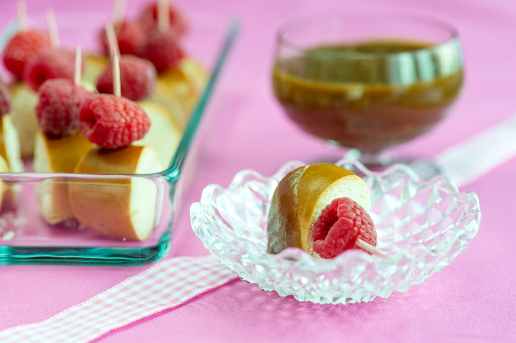 Vanilj- och hallonbitar med chokladkolladipp