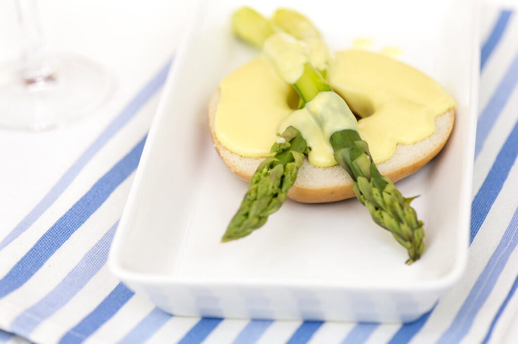 Rostad kringla, sparris och hollandaisesås